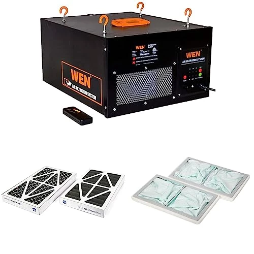 WEN 3410 3-Speed Remote-Controlled Air Filtration System & Activated Carbon Air Filters, 5-Micron Inner Filter For 400 CFM Air Filtration Systems, Two Pack & Woodworking Air Filters, Two Pack